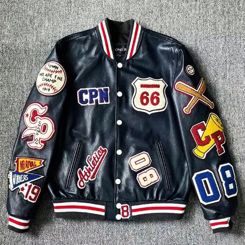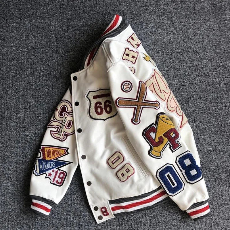 Dynamisk look: Juku City Jacket erbjuder en dynamisk look med sina broderade fläckar och dess design inspirerade av baseballjackor, perfekt för att hävda din stil i stan.